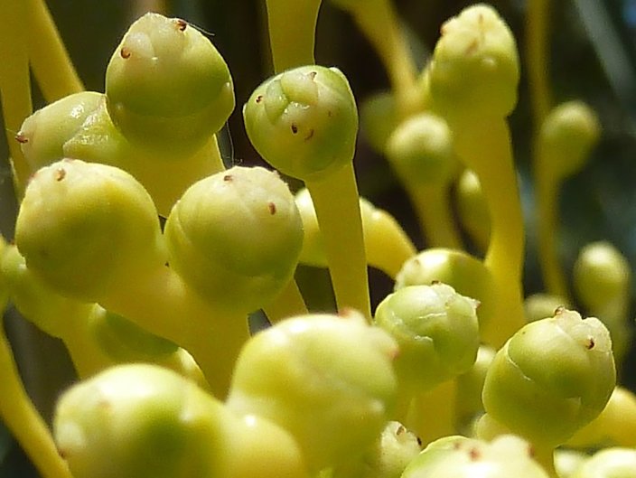name Phoenix dactylifera L. Common names English: date palm, edible date; Arabic: 枣椰子, شجرة العرب; Chinese: 海枣(植物); Czech: datlovník pravý; Dutch: dadel; French: dattier, palmier dattier; German: Echte Dattel palme; Hindi: खजूर का पेड़, फोनिक्स डेक्टीलिफेरा; Hungarian: datolyapálma; Japanese: ナツメヤシ類, 대추야자 ; Persian: نخلهاي خرما; Italian: palme da datteri; Spanish: palma datilera, almera datilera; Portuguese: tamareira, Polish: Daktyl, Daktylowa palma, Daktylowe drzewo, Daktylowiec właściwy; Russian: пальма финиковая, финик пальчатый, финиковая пальма дланевидная; Slovak: datľovník obyčajný; Turkish: hurma palmiyesi 12 Other Common Names Synonyms Palma dactylifera (L.) Mill.; P. atlantica var. maroccana A.Chev.; P. chevalieri D.Rivera, S. Ríos & Obón; P. dactylifera var. adunca D.H. Christ ex Becc.; P. dactylifera var. costata Becc.; P. dactylifera var. cylindrocarpa Mart.; P. dactylifera var. gonocarpa Mart.; P. dactylifera var. oocarpa Mart.; P. dactylifera var. oxysperma Mart.; P. dactylifera var. sphaerocarpa Mart.; P. dactylifera var. sphaerosperma Mart.; P. dactylifera var. sylvestris Mart.; P. iberica D. Rivera, S.Ríos & Obón 10 Relatives Canary Island date palm (P. canariensis), Senegal date palm (P. reclinata), Wild date plum, India date palm (P. sylvestris) 8 Family Arecaceae/Palmae (palm family) Origin Northern Africa and the Middle East 1 USDA hardiness zones 8-12 8 Uses Edible fruit; landscape specimen; many uses in other countries 3 Height Up to 100 ft (45.7 m) 1 Width Up to 40 ft (12 m) 1 Crown Crown is wide but not very dense (Fig. 10) Plant habit Strong upright trunk; vertical, cylindrical and columnar of the same girth all the way up 10 Growth rate Very slow grower; grows at the rate of 1-1.5 ft (30-45 cm) a year 3 Longevity Will keep on for a century though productivity declines after 60 to 80 years 3 Trunk/bark/branches Gray trunk patterned with diamond-shaped leaf scars; multi-stemmed palm from which the suckers are usually removed to create single stemmed specimens 1 Pruning requirement Many homeowners trim the lower leaves to discourage a fungus that commonly develops in warmer climates Leaves Evergreen; pinnately compound; blue-green to gray-green; to 20 ft (6 m) in length; leaflets are 1-2 ft (0.3-0.6m) long 2 Flowers Orange inflorescences can reach lengths of 4 ft (1.2 m), are heavily branched; bear small white blossoms; grow among the leaves; dioecious thus the male must always be nearby 4,2 Fruit Oblong; 1-3 in. (25-75mm) long; occur in orange or red masses when mature 2 Season In California, dates ripen from late Sept. through Dec. 3 USDA Nutrient Content: Deglet Noor, Medjool pdf Light requirement Full sun; cannot grow in the shade 8 Soil tolerances Neutral and basic (mildly alkaline) soils; can grow in very alkaline and saline soils soils that are well drained 8 pH preference It requires neutral to acidic soils Drought tolerance Although a drought resistant desert plant, the date palm has deep roots that typically seek out subterranean water sources; provide regular irrigation for best look and faster growth 1 Soil salt tolerance Salt-tolerant species 8 Cold tolerance 15°F (-9°C) Plant spacing 30 to 33 ft (9-10 m) apart each way 3 Roots Being a monocotyledon, date palm has no tap root; root system fasciculated and fibrous 10 Invasive potential * None reported Pest resistance Susceptible to lethal yellowing disease, so it is best to avoid planting the palm where the disease is present Known hazard Male trees are extremely allergenic because their pollen is air-borne; plant has spines or sharp edges 7,8 Reading Material Phoenix dactylifera: Date Palm, University of Florida pdf Date, Fruits of Warm Climates Phoenix dactylifera L., Agroforestree Database Growing True Date Palms in South Florida, University of Florida, Miami-Dade County pdf Origin While the native range of this palm is uncertain, it is thought to be indigenous to either North Africa or the Middle East. It is also present in Turkey, Pakistan, and Northwest India, but is thought to have been introduced to these areas long ago through transport. 2 The genus nam Phoenix is the Latin term for the Greek word that means “date palm.” The species name dactylifera means “finger-bearing” and refers to the fruit clusters produced by this palm. Dactylifera is a combination of the Greek word dactylus, or “finger,” and the Latin word ferous, or “bearing.” 2 Another source refers this botanical name to the legendary Egyptian bird, "Phoenix", which lived to be 500 years old, and cast itself into a fire from which it rose with renewed growth (Pliny, 1489; Van Zyl, 1983). This resemblance to the date palm, which can also re-grow after fire damage, makes the bird and the date palm share this name, while "dactylifera" originates from the Hebrew word "dachel" which describes the fruit's shape (Popenoe, 1938). 10 Description Although date palm prefers dry climates, it occurs along rivers and streams and in areas of the desert that have underground water sources. In America, this tree grows well in regions where there is low humidity, although it is found in humid areas like Florida, and where the temperatures do not fall below 15°F. Date palm is slow growing and requires full sun for optimal growth; it can reach heights up to 80 feet. When young, the trunk bears boots (remnant petioles that were attached to the trunk); when mature, the boots wear and become knobby but still show a characteristic spiraling leaf arrangement. 2 People in the Middle East have used the date palm as a main food source for at least 1000 years. It is only in the last several hundred years that it became a global commodity. Today, cultivation of date palm has spread into many other parts of the world including the United States. Currently, there are 