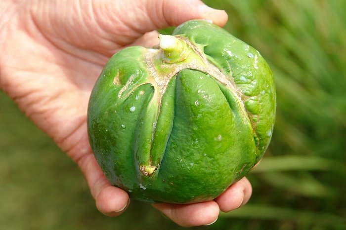 Fig. 13. Carpellody of papaya fruit, a physiological disorder (not pathogenic)