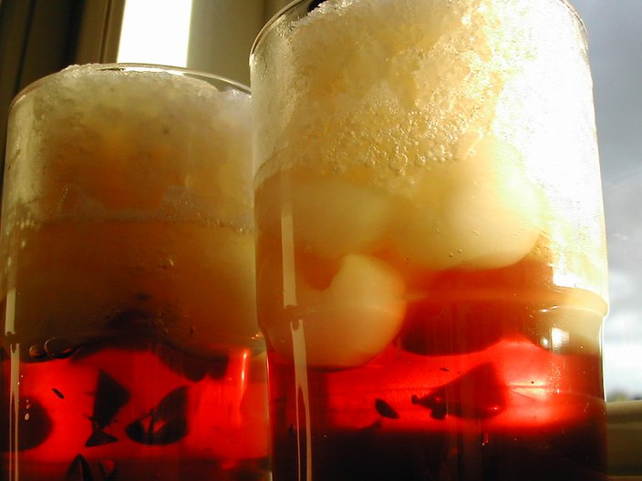 Fig. 45. Longans sandwiched between lingonberry jelly and green tea granita