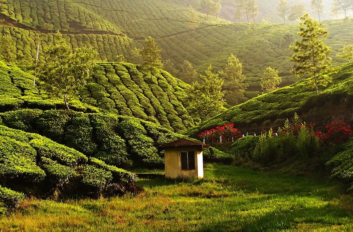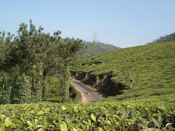 Fig. 43 Athulvis. "Tea plantation in Vythiri, Kerala, India." Wikimedia Commons, 3 Mar. 2024, (CC BY-SA 4.0), commons.wikimedia.org/wiki/File:Tea_plantation_in_Vythiri_2.jpg. Accessed 1 Mar. 2025.