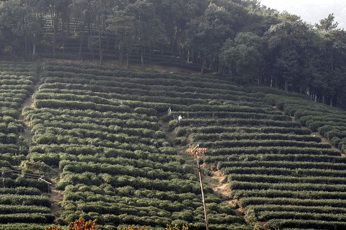 Fig. 44 Kübelbeck, Armin. "Tea bushes Camellia sinesis in Hangzhou (China, Province Zhejiang). Longjing (Dragon Well Tea)." Wikimedia Commons, 3 Nov. 2007, (CC BY-SA 3.0), commons.wikimedia.org/wiki/File:Camellia_sinensis_02.jpg. Accessed 8 Mar. 2025.