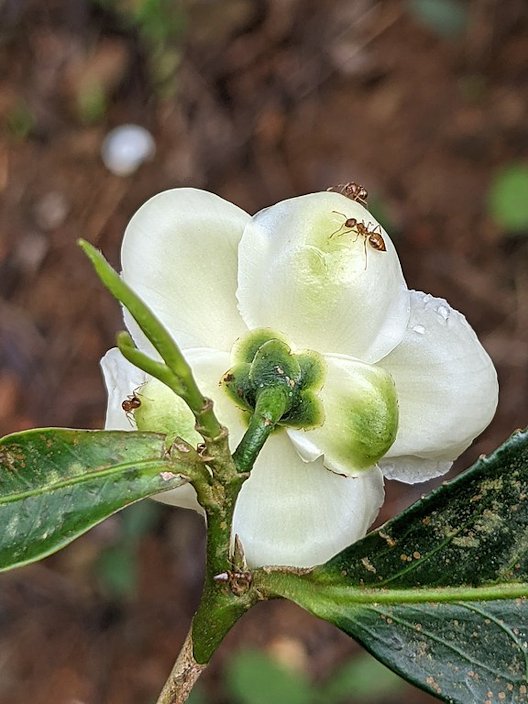 Fig. 16 Vinayaraj. "C. sinensis, flower and leaves, Wayanad, India." Wikimedia Commons, 23 Aug. 2021, (CC BY-SA 4.0), commons.wikimedia.org/wiki/File:Camellia_sinensis_-_Flower_and_leaves_-_Wayanad_2021_(2).jpg. Accessed 24 July 2025.