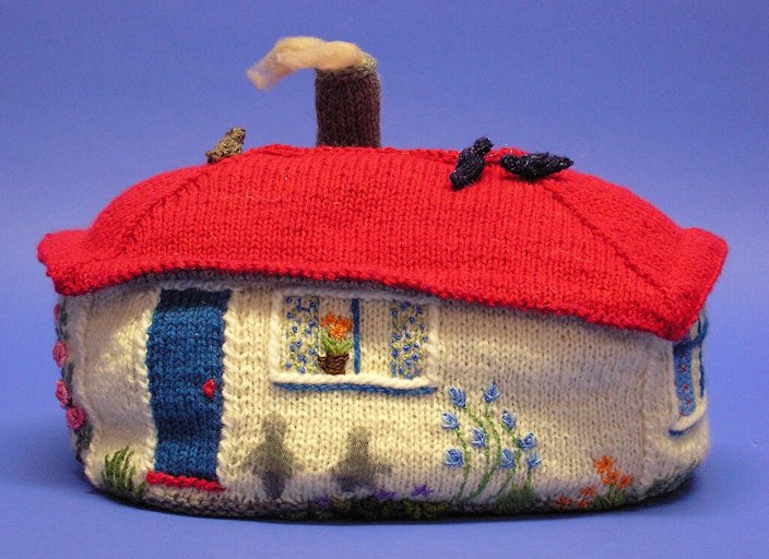 Fig. 64 Nicholson, Heather. "Teacosy, house shaped, knitted commissioned from Heather Nicholson for a teacosy exhibition." Wikimedia Commons, 26 Apr. 2017, Collection of Auckland War Memorial Museum Tāmaki Paenga Hira, 2002.41.1, c.  Nov. 1992, 19 Apr .2002, c. 1993, (CC BY 4.0), commons.wikimedia.org/wiki/File:Teacosy_(AM_2002.41.1-2).jpg. Accessed 23 July 2025.